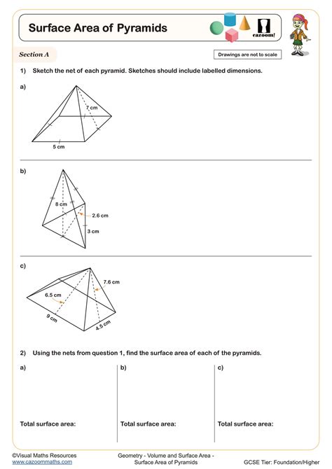 Web Surface Area Of A Pyramid Worksheets, Geometry Worksheets For 4Th Grade, 5Th Grade And Middle School