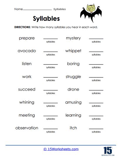 Web this syllable worksheet guides children through syllable counting practice. Syllables are the number of separate beats in a word. Our recognizing syllables worksheets will infuse your lessons with interactivity and excitement.