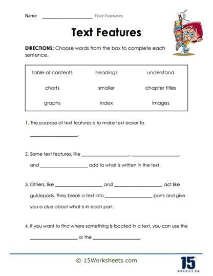 Web the purpose of the text feature below the photo is a) to show the main idea of the article to the reader. Web these worksheets are specifically designed to improve students' understanding of various text features, such as headings, subheadings, captions, and bold print, which are crucial. Award winning educational materials designed to help kids succeed.