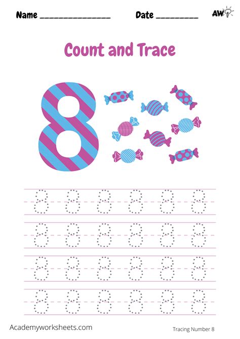 Web tracing the number 8. Download free printable number tracing worksheet. Web these printable worksheets help teach kids to print and count the numbers between 1.