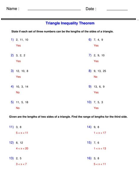 Web worksheet triangle inequalities decide whether each set of numbers is a triangle. The triangle inequality theorem explains the connection between a triangle’s three sides. Web this worksheet reviews how to use inequality to find the measure of the sides of triangles.
