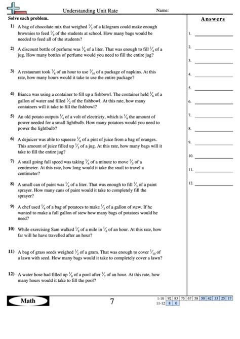 Unit Rate Worksheets With Answer Key. The unit rate is 40 kg per cow 5. The first set of rate problems is restricted to whole numbers.