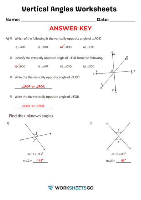 Vertical Angles Worksheets Answer Key. These include naming the vertex and the arms of an angle, using a protractor to observe a figure, and. Solution a.a1 and a2 are a.